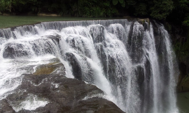 十分瀑布位於新北市平溪區南山村,鐵路 支線侯硐站和平溪站之間,十分風景區 內;十分原來的意思指就是「十份」,就 是指有十戶人家合作無間在這裡興建家 園;十分風景區實際地理位置是在基隆河 的支流上,在台灣風景區中是屬於瀑布溪 谷型,而且基隆河是北部地區最大也是最 長的一條河流,由於源頭的侵蝕作用與附 近切割地形的關係,造成許多的斷層與奇 岩,而河水經過這些斷層和奇岩後,流速 快而造成許多瀑布奇觀。北自侯硐至三貂 嶺,再延伸到十分寮、平溪一帶,形成一 連串此⋯⋯起彼落的瀑布群,十分瀑布更是最 為著名的瀑布景點。